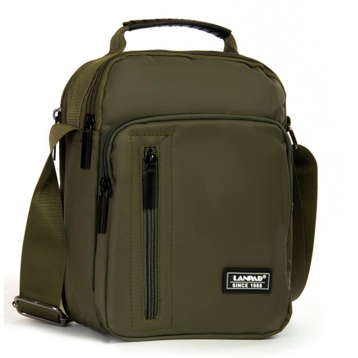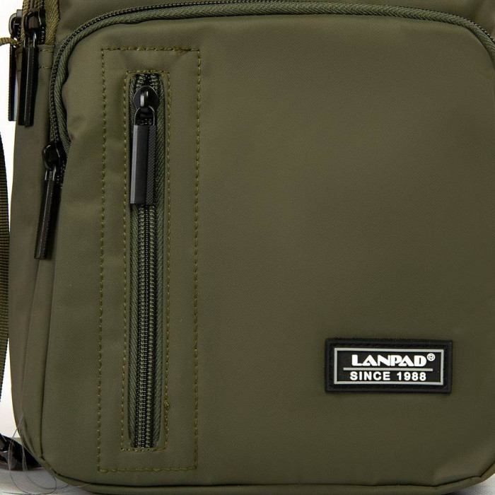 Сумка чоловіча Lanpad. Два відділення, що закриваються на блискавку. Усередині відділень є кишеня на блискавці та відкрита кишеня. На фасаді розташовані дві кишені на блискавці, а на звороті одна кишеня. Регульований плечовий ремінь шириною 4см.