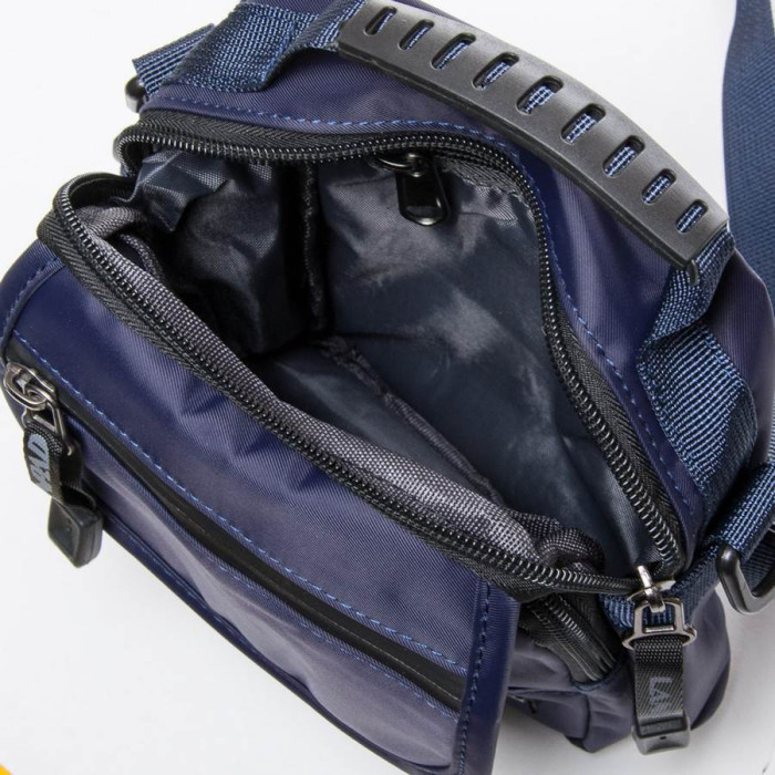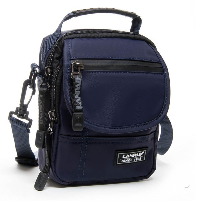 Чоловіча сумка Lanpad. Одне відділення, закривається на блискавку. Всередині відділення є кишеня на блискавці і відкрита кишеня. На фасаді розташовані кишені на блискавці. На зворотному боці є кріплення для носіння на поясному ремені. Регульований плечовий ремінь, шириною 2,5 см.