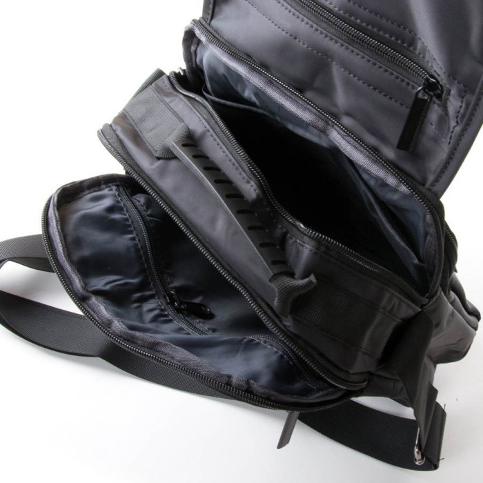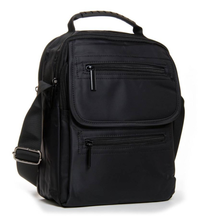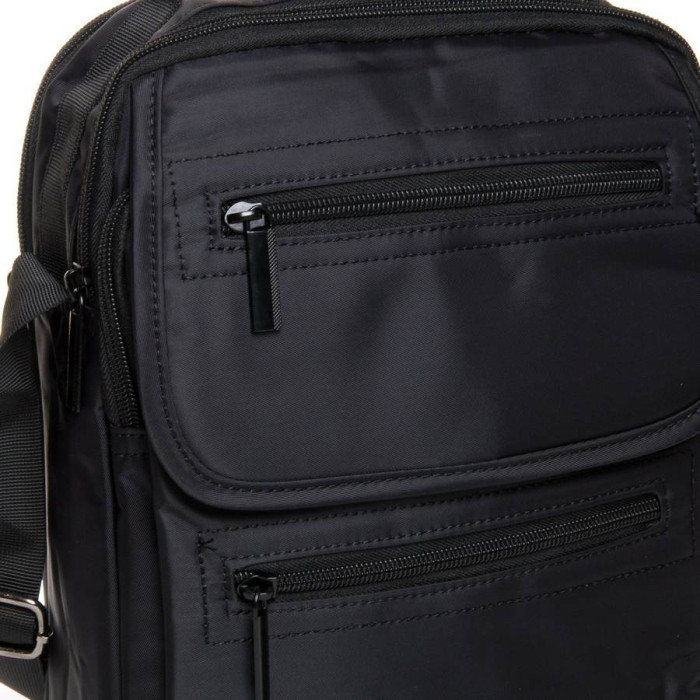 Чоловіча сумка Lanpad. Виготовлена з матеріалу з водовідштовхувальним покриттям. Два відділення, що закриваються на блискавку. Усередині відділень є кишеня на блискавці та відкрита кишеня. На фасаді є додаткове відділення під клапаном. На фасаді та зворотній стороні розташовані кишені на блискавці. Регульований плечовий ремінь шириною 4см.