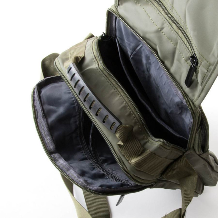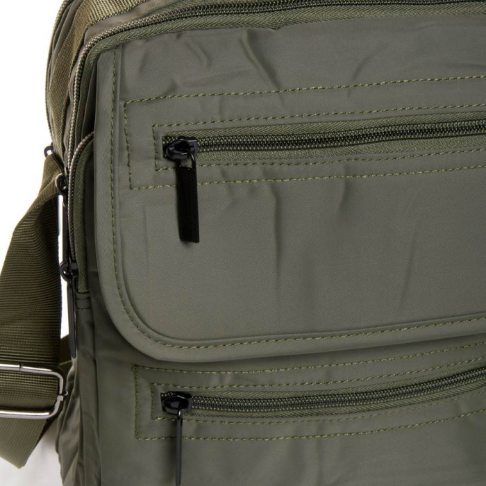 Чоловіча сумка Lanpad. Виготовлена з матеріалу з водовідштовхувальним покриттям. Два відділення, що закриваються на блискавку. Усередині відділень є кишеня на блискавці та відкрита кишеня. На фасаді є додаткове відділення під клапаном. На фасаді та озброєній стороні розташовані кишені на блискавці. Регульований плечовий ремінь шириною 4см.