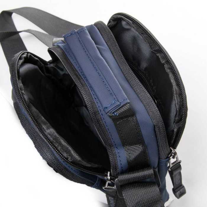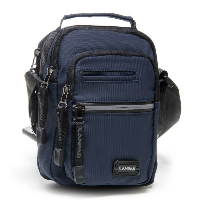 Чоловіча сумка Lanpad. Два відділення, закриваються на блискавку. Усередині відділень є кишеня на блискавці. На фасаді розташовані дві кишені на блискавці. Зовні сумки на зворотному боці є кишеня на блискавці. Регульований плечовий ремінь, шириною 3см.