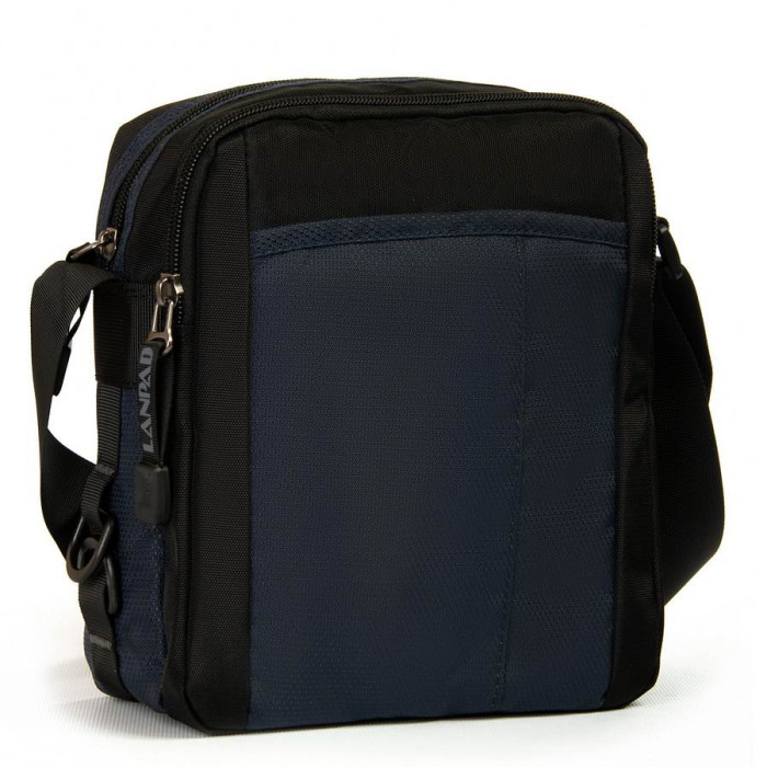 Чоловіча сумка Lanpad. Два відділення, що закриваються на блискавку. Усередині відділення є кишеня на блискавці. На фасаді та зворотній стороні є кишені на блискавці. Регульований плечовий ремінь.