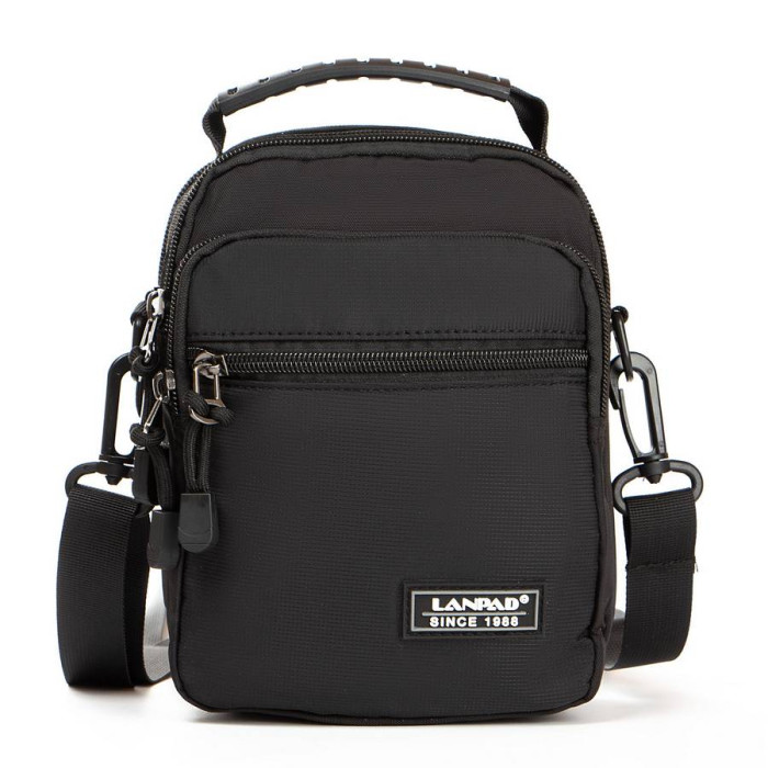 Сумка чоловіча Lanpad. Два відділення, що закриваються на блискавку. Усередині відділення є кишеня на блискавці та відкрита кишеня. На фасаді знаходяться дві кишені на блискавці. На звороті є кріплення для носіння сумки на поясі.