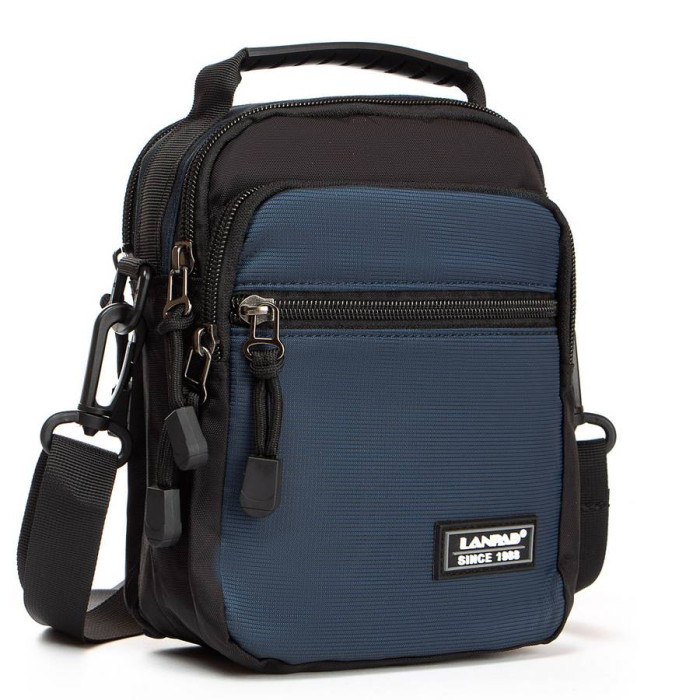 Сумка чоловіча Lanpad. Два відділення, що закриваються на блискавку. Усередині відділення є кишеня на блискавці та відкрита кишеня. На фасаді знаходяться дві кишені на блискавці. На звороті є кріплення для носіння сумки на поясі.