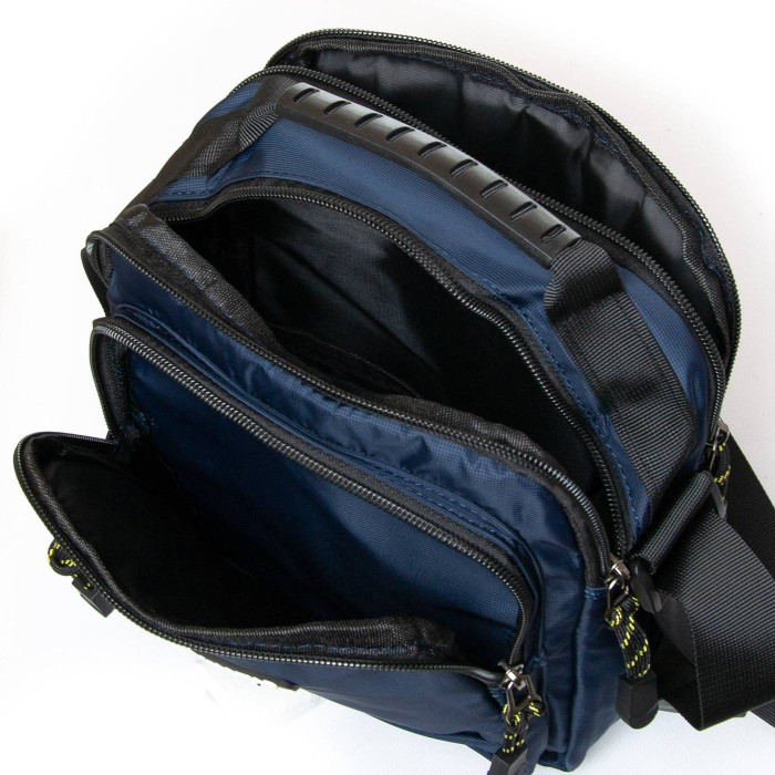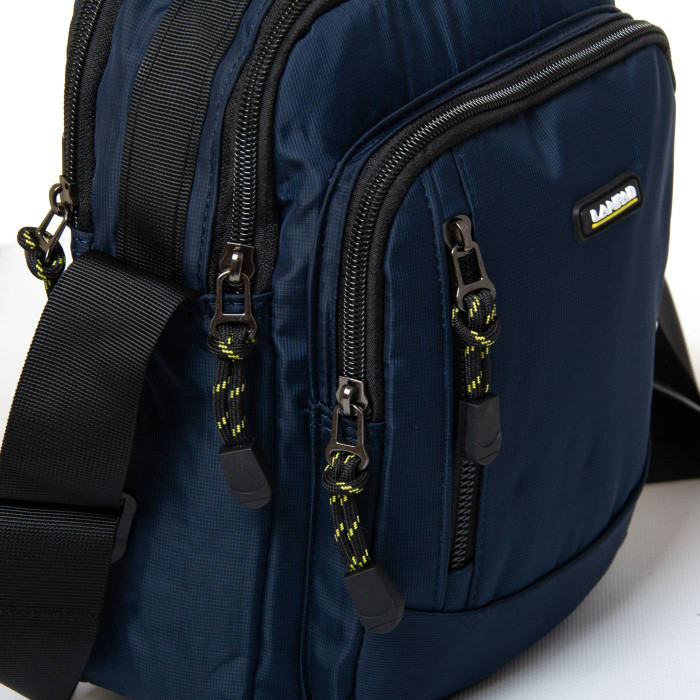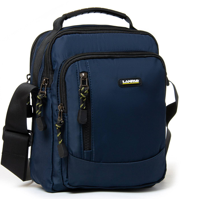 Чоловіча сумка планшет Lanpad. Два відділення, що закриваються на блискавку. Усередині відділень розташована кишеня на блискавці та відкрита кишеня. На фасаді знаходяться дві великі кишені на блискавці. На звороті є одна кишеня на блискавці. Регульований плечовий ремінь шириною 4см.