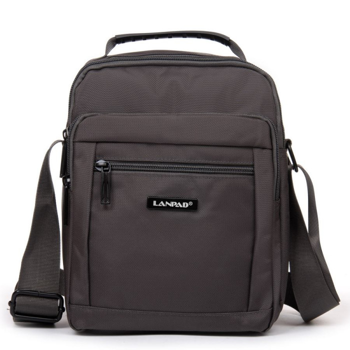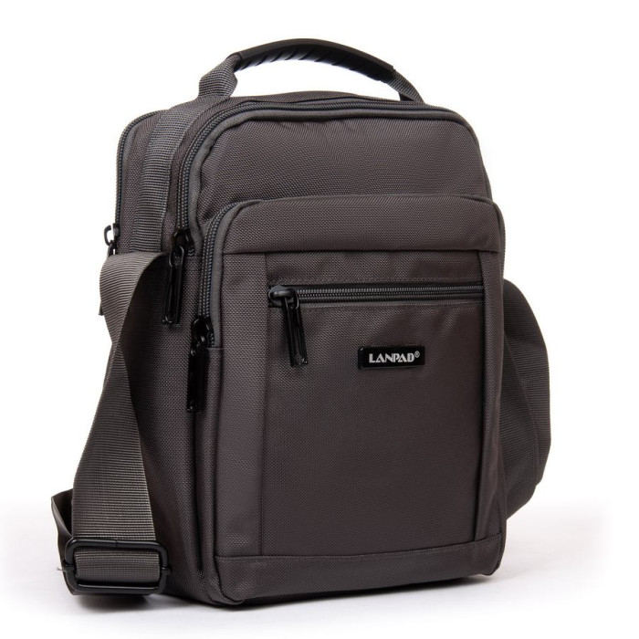 Чоловіча сумка планшет Lanpad, щільне плетіння. Два відділення, що закриваються на блискавку. Усередині є кишеня на блискавці і відкрита бічна кишеня. На фасаді сумки знаходяться 2 великі кишені на блискавці, а на звороті є одна кишеня на блискавці. Регульований плечовий ремінь шириною 4см.