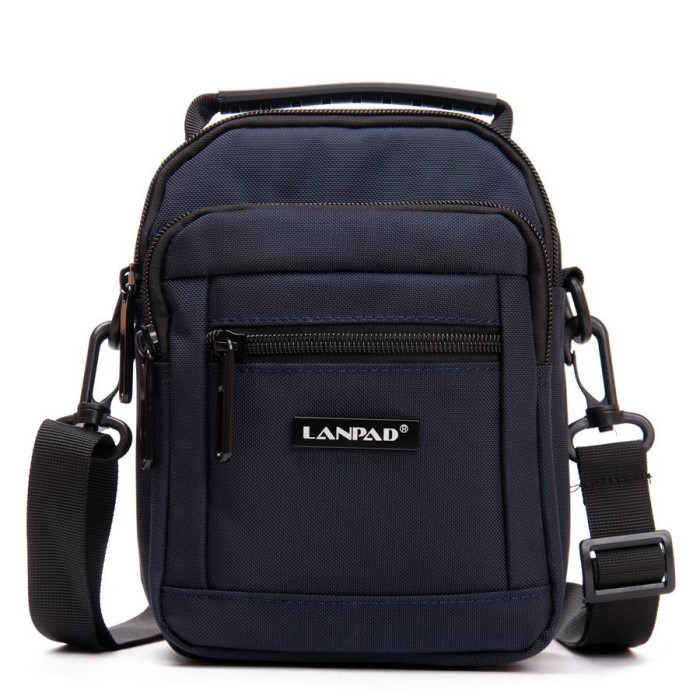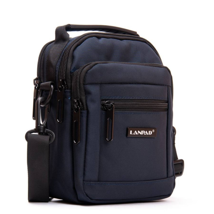 Чоловіча сумка Lanpad. Два відділення, закриваються на блискавку. Усередині відділень розташована кишеня на блискавці і відкрита кишеня. На фасаді знаходяться дві місткі кишені на блискавці. На зворотному боці є кріплення на пояс.