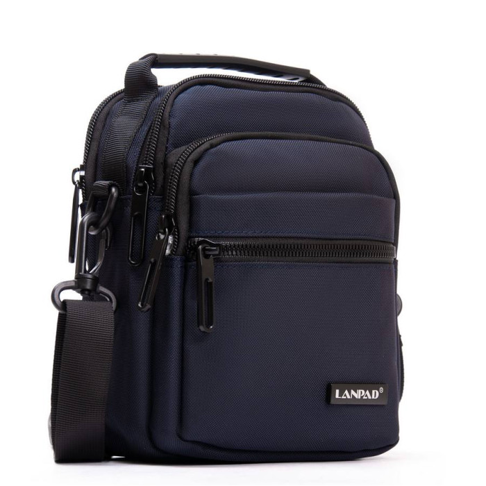 Чоловіча сумка Lanpad. Два відділення, закриваються на блискавку. Усередині відділень розташована кишеня на блискавці і відкрита кишеня. На фасаді знаходяться дві місткі кишені на блискавці. На зворотному боці є кріплення на пояс.