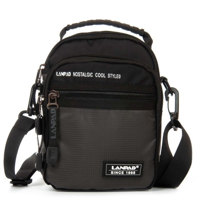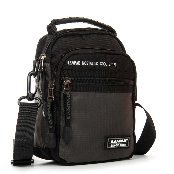 Сумка чоловіча Lanpad. Одне відділення закривається на блискавку. Усередині є кишеня на блискавці та відкрита кишеня. На фасаді розташовані дві кишені на блискавці, а на звороті є кріплення на пояс. У комплекті регульований плечовий ремінь.