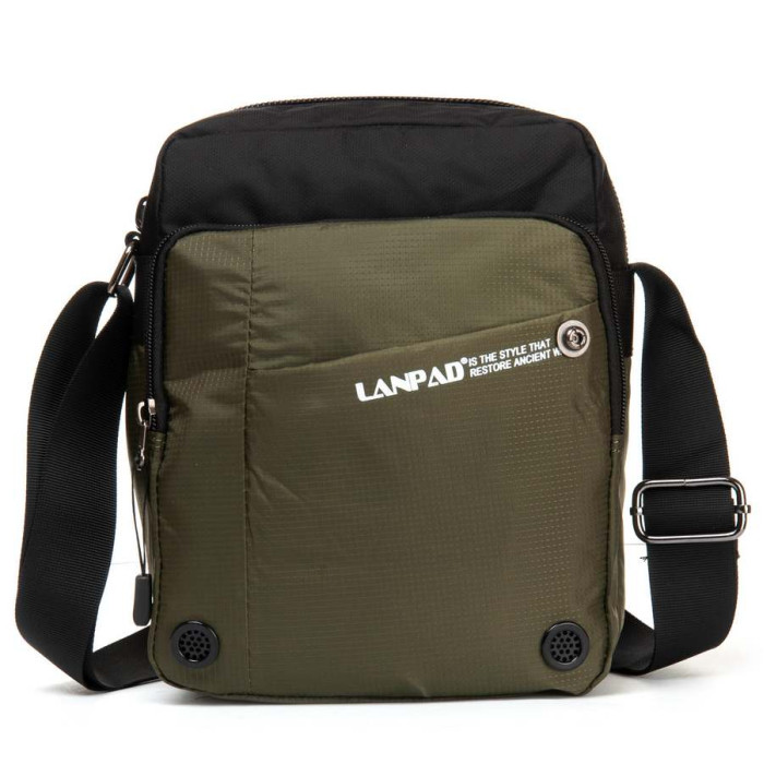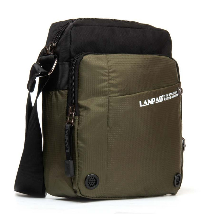 Чоловіча сумка Lanpad. Одне основне відділення закривається на блискавку. Усередині відділення є кишеня на блискавці та відкрита кишеня. На фасаді та зворотному боці є кишені на блискавці. Регульований плечовий ремінь.