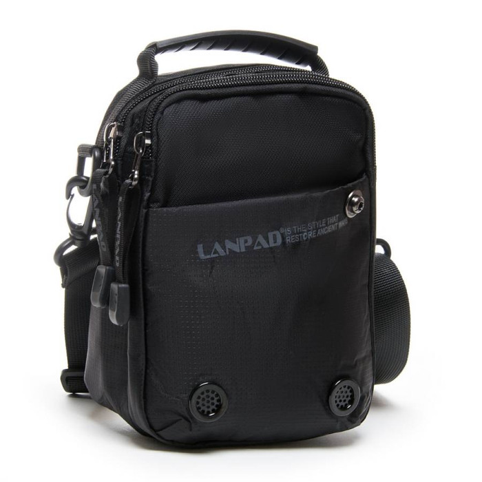 Чоловіча сумка Lanpad. Два відділення, закриваються на блискавку. Усередині відділень є кишеня на блискавці і відкрита кишеня. На фасаді розташований кишені на застібці-липучці. На зворотному боці є кріплення на пояс. До комплекті регульований плечовий ремінь.