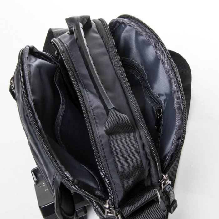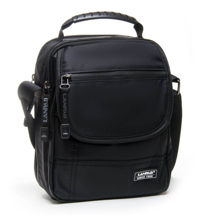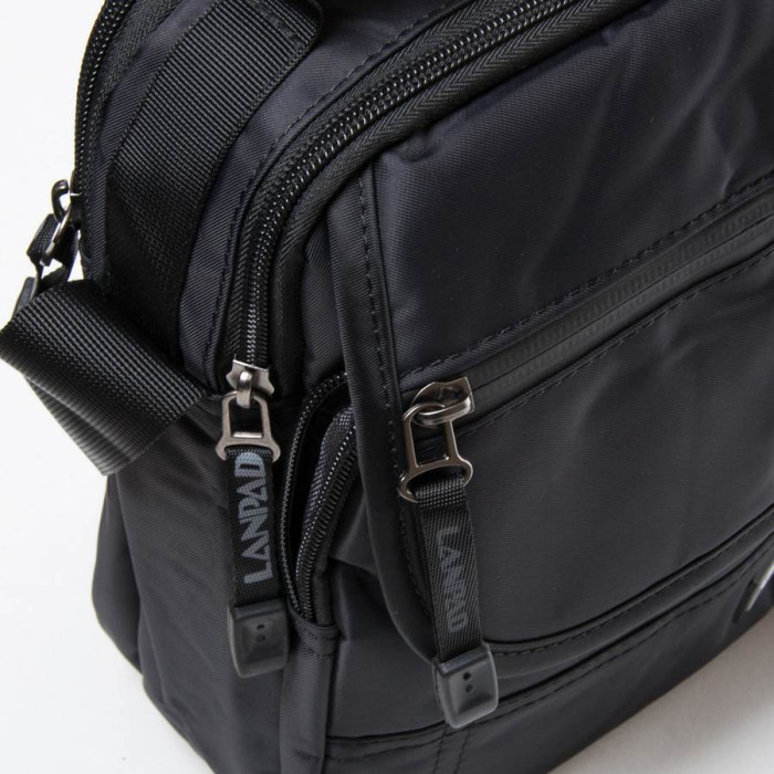 Чоловіча сумка Lanpad. Два відділення, що закриваються на блискавку. Усередині відділення розташована кишеня на блискавці та відкрита кишеня. На фасаді на клапані та під клапаном знаходиться велика кишеня на блискавці. На звороті є кишеня на блискавці. Регульований плечовий ремінь.