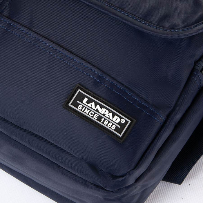 Чоловіча сумка Lanpad. Два відділення, що закриваються на блискавку. Усередині відділення розташована кишеня на блискавці та відкрита кишеня. На фасаді на клапані та під клапаном знаходиться велика кишеня на блискавці. На звороті є кишеня на блискавці. Регульований плечовий ремінь.