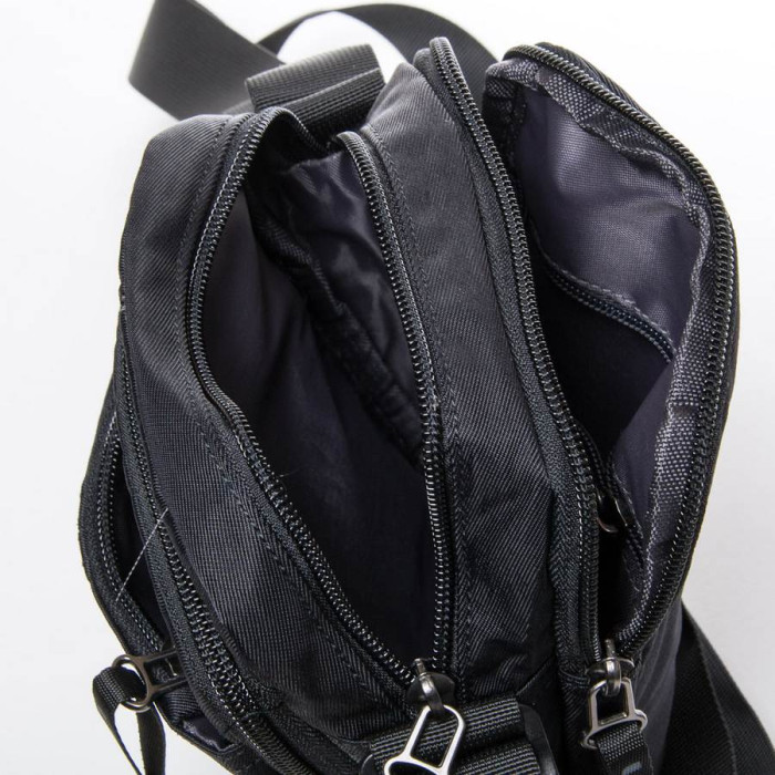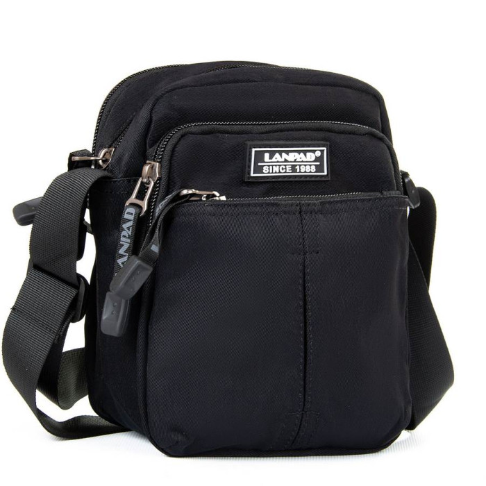 Чоловіча сумка Lanpad. Два відділення, що закриваються на блискавку. Усередині відділень розташована кишеня на блискавці. На фасаді розташовані дві кишені на блискавці. Регульований плечовий ремінь.