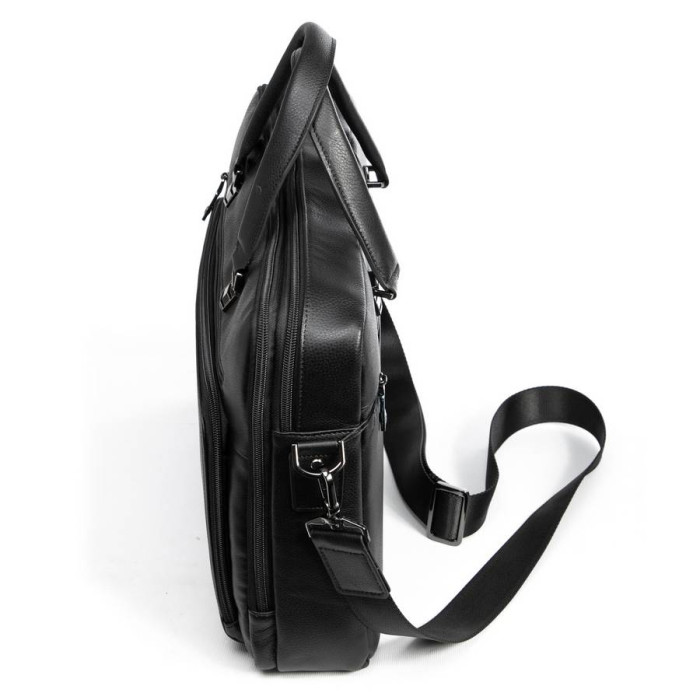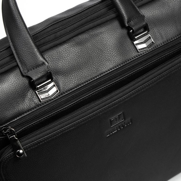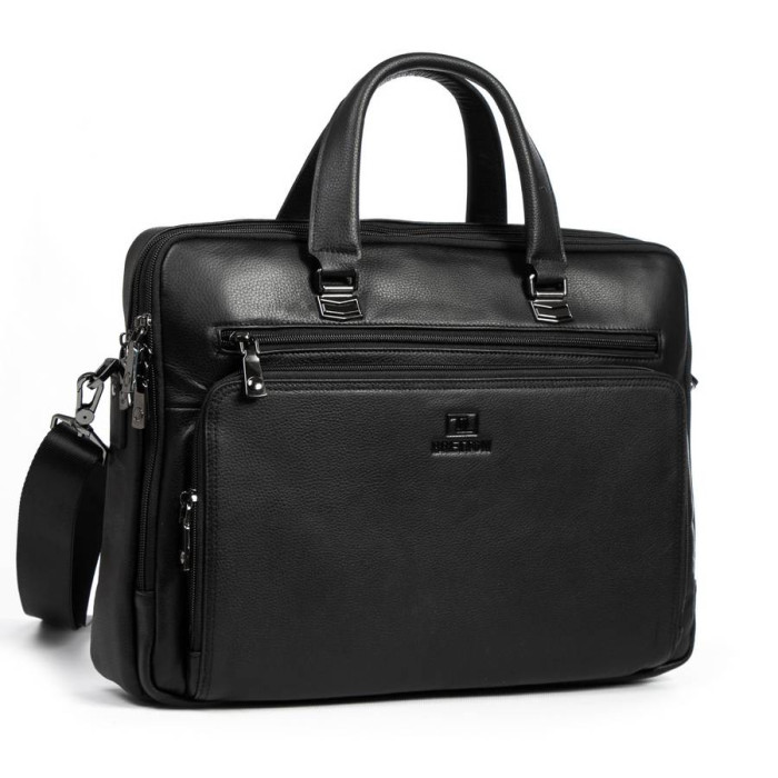 Чоловічий шкіряний портфель Bretton. Два відділення, що закриваються на блискавці. Усередині одного відділення є велика кишеня для нетбука 14" або паперів А4 і кишеня на блискавці. У другому відділенні є велика бічна кишеня відкрита кишеня. На фасаді і на звороті розташовані місткі кишені на блискавці. Регульований плечовий ремінь у комплекті.