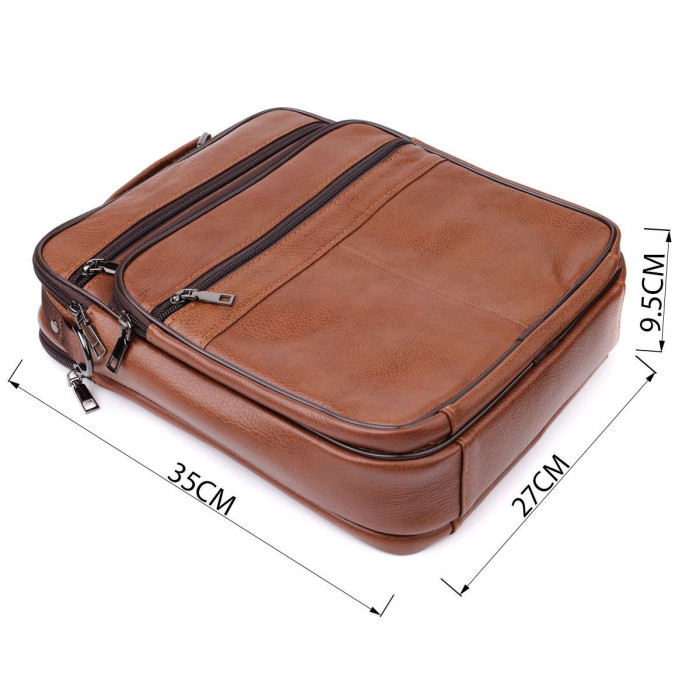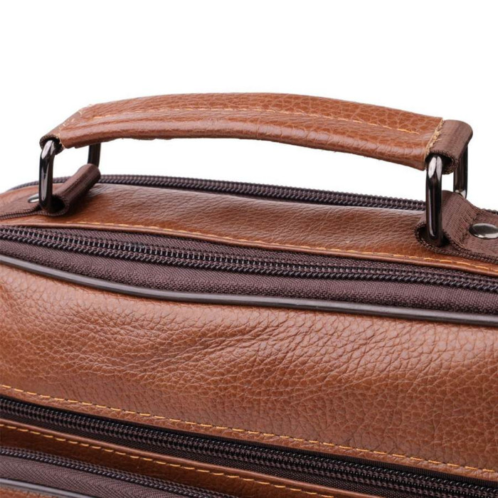 Сумка оснащена шкіряною ручкою для перенесення в руці і регульованим знімним текстильним ремінцем, який можна налаштувати по довжині і носити сумку через плече.