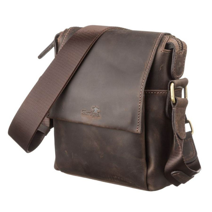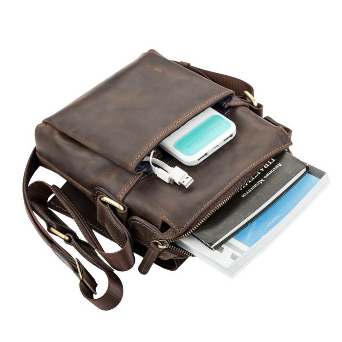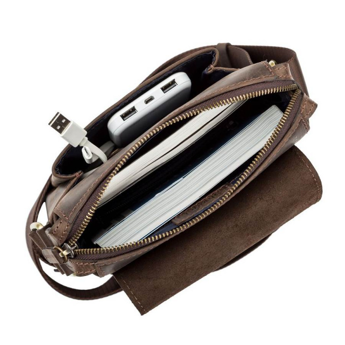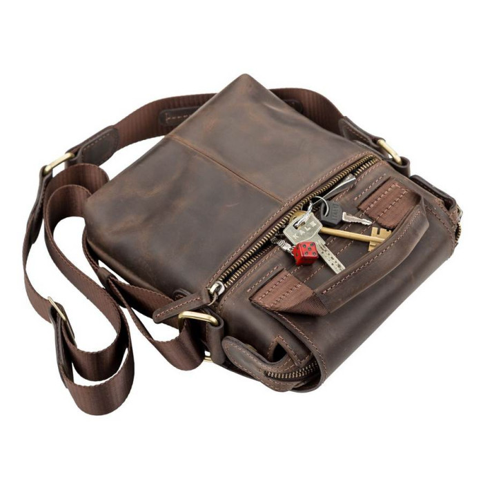 Чоловіча шкіряна сумка невеликого розміру з клапаном. Аксесуар виконаний з натуральної вінтажної шкіри, характерними ознаками якої є: неоднорідність забарвлення і потертості, які надають виробу вишуканого, індивідуального виду.