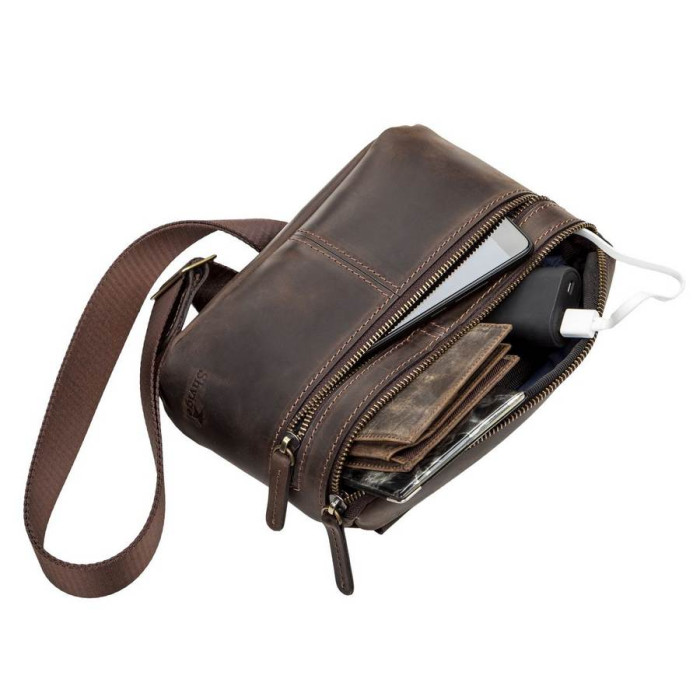 Стильна чоловіча шкіряна сумка, з популярної вінтажної шкіри, невеликого розміру. Сучасний і модний дизайн.