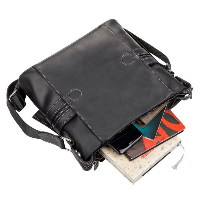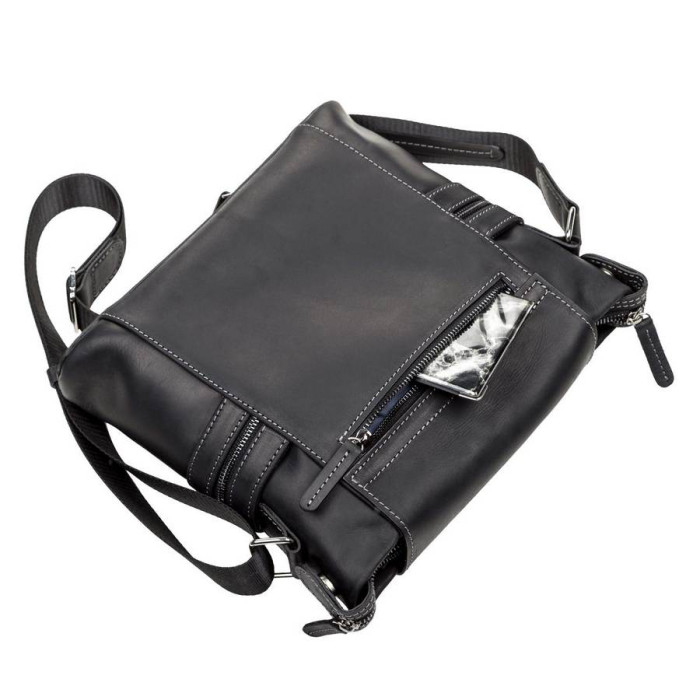 Вмістка чоловіча шкіряна сумка, з натуральної вінтажної шкіри, через плече, середнього розміру з клапаном. У неї можна помістити зошит, планшет, телефон та інші дрібниці.