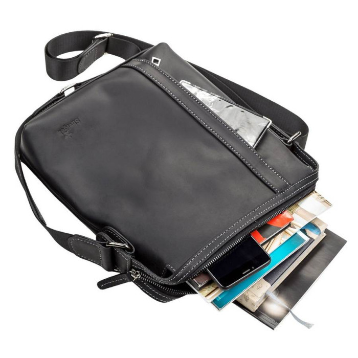 Красива сумка для стильних чоловіків виконана з натуральної вінтажної шкіри, характерними ознаками якої є: неоднорідність забарвлення і потертості, які надають виробу вишуканого, індивідуального виду. Всередині: кишеня-перегородка на блискавці, кишеня для телефону, відділення для ручок і дрібниць,