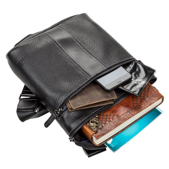 Стильна, сучасна, чоловіча сумка, з натуральної зернистої шкіри. Розмір дуже зручний. Особливість дизайну дозволить чоловікові носити з собою особисті речі, документи, багато потрібних дрібниць.