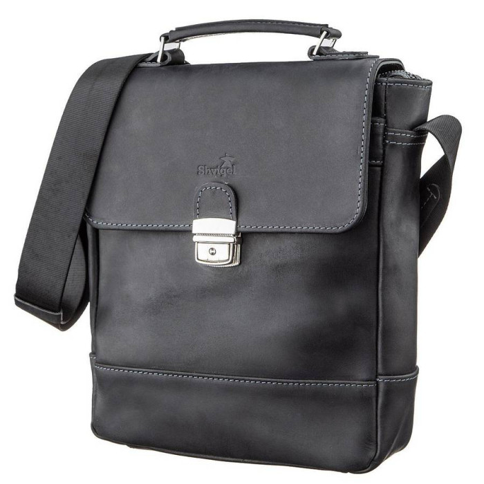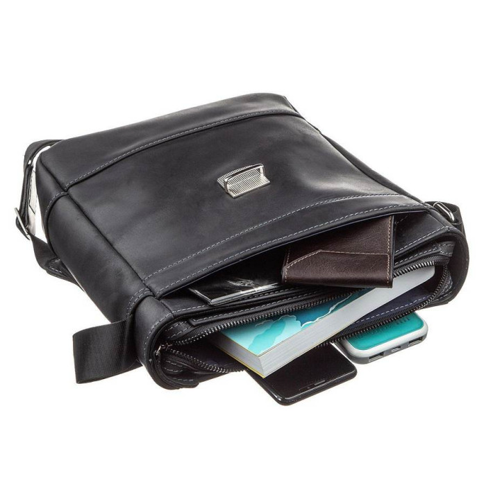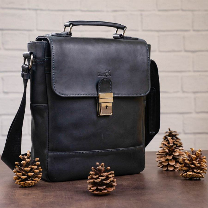 Відмінною особливістю такої сумки є, те що вона закривається на ключ. Аксесуар прошитий по краях світло-блакитною ниткою. Шкіра Crazy Horse виглядає дуже розкішно та вишукано. Має дуже зручний і оптимальний розмір. Продуманий дизайн аксесуара дозволить носити вам з собою всі найнеобхідніші речі. Згодом на сумці з такої шкіри залишаються подряпини, що надає їй ефекту старовини, за який наші клієнти і полюбили ці моделі.