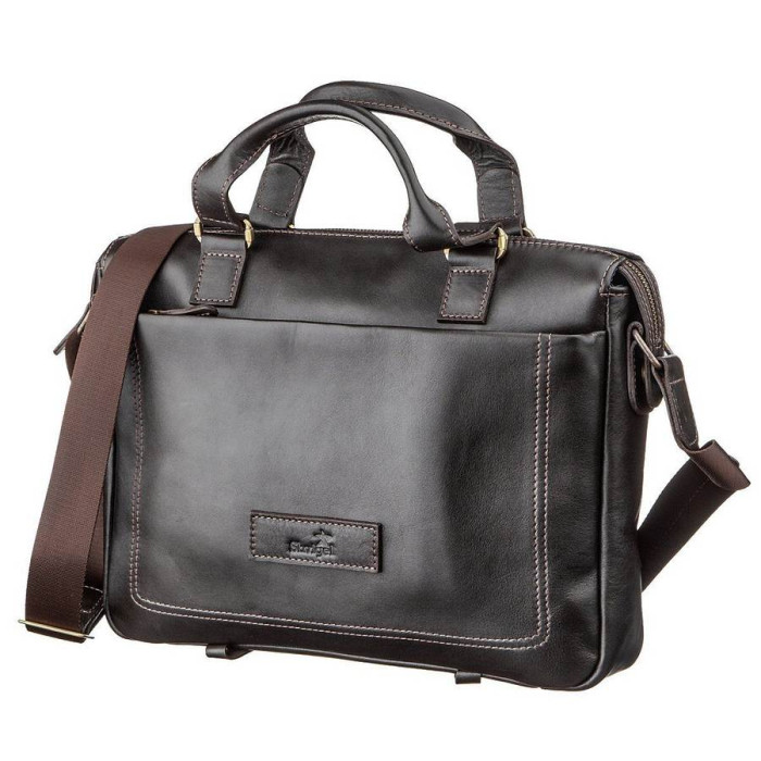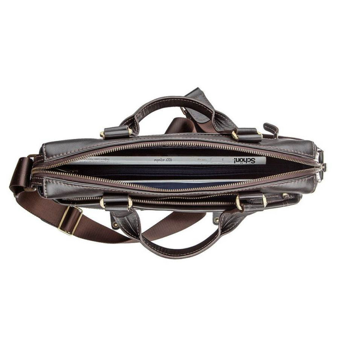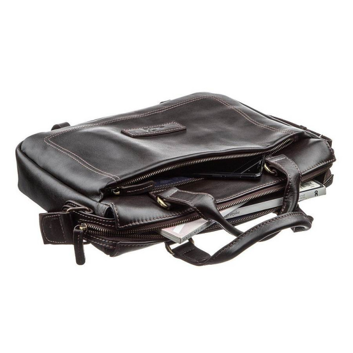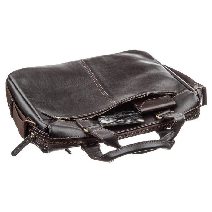 Сучасна коричнева чоловіча сумка, з натуральної шкіри, формату-А4, з двома зручними шкіряними ручками для повсякденного використання, що дозволяє, носити папку з документами і особисті речі. Ідеально підходить діловим людям, які йдуть в ногу з часом.
