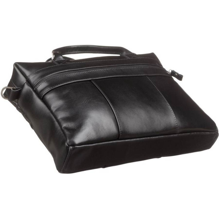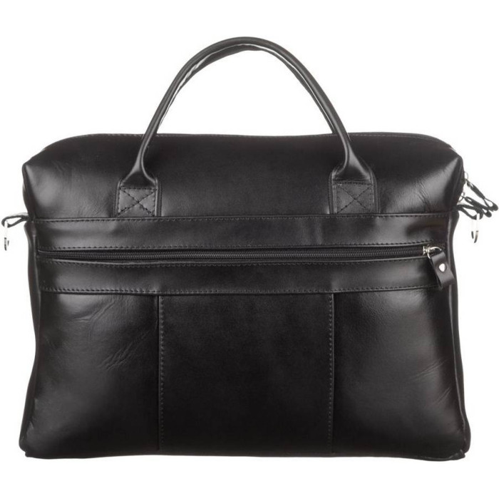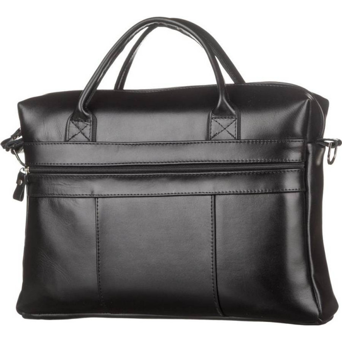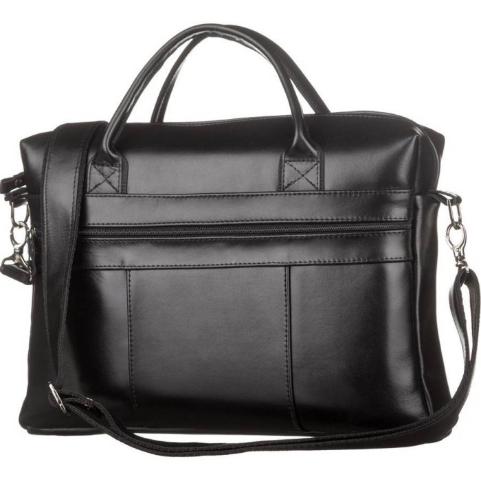 Практична чоловіча сумка з високоякісної натуральної гладкої шкіри, чорного кольору. Аксесуар складається з великого відділення на блискавці в яке можна помістити ноутбук 14 або папку з документами. Головне відділення обладнане кишенею, в яке може поміститися невеликий нетбук або планшет. На задній стінці невелика кишеня на змійці. Зовні обидва боки даного вироби розташоване по одному відділенні на блискавці. Сумку можна переносити в руці за допомогою зручних шкіряних ручок, а також через плече (в комплекті є, регульований плечовий ремінь, який виконаний в комбінації текстильного матеріалу та натуральної шкіри). Колір фурнітури: срібло.