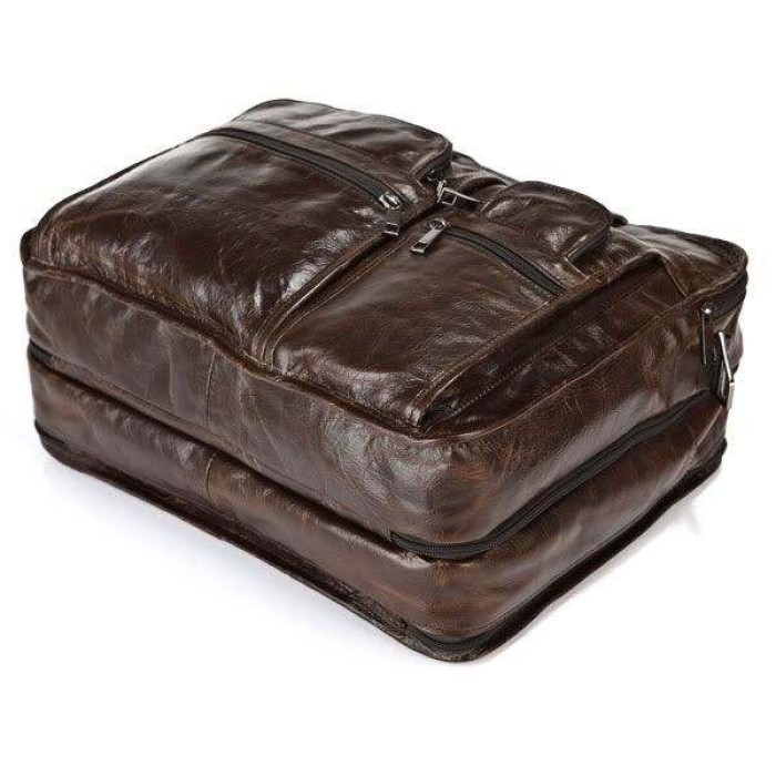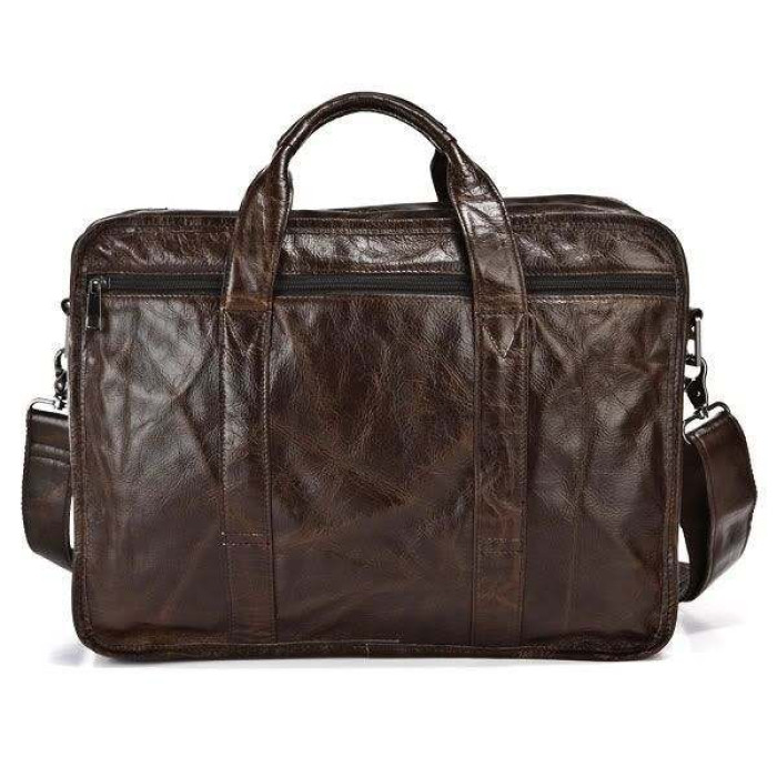 Дуже зручна, практична і функціональна шкіряна сумка благородного коричневого кольору. У таку сумку з легкістю поміщається ноутбук діагоналлю 15.6 дюймів. Аксесуар має зручні шкіряні ручки і плечовий ремінь, за допомогою якого сумку можна носити на плечі.