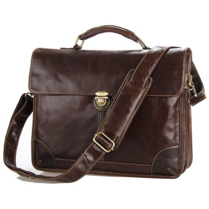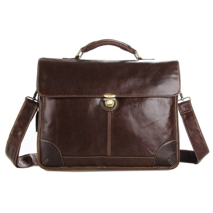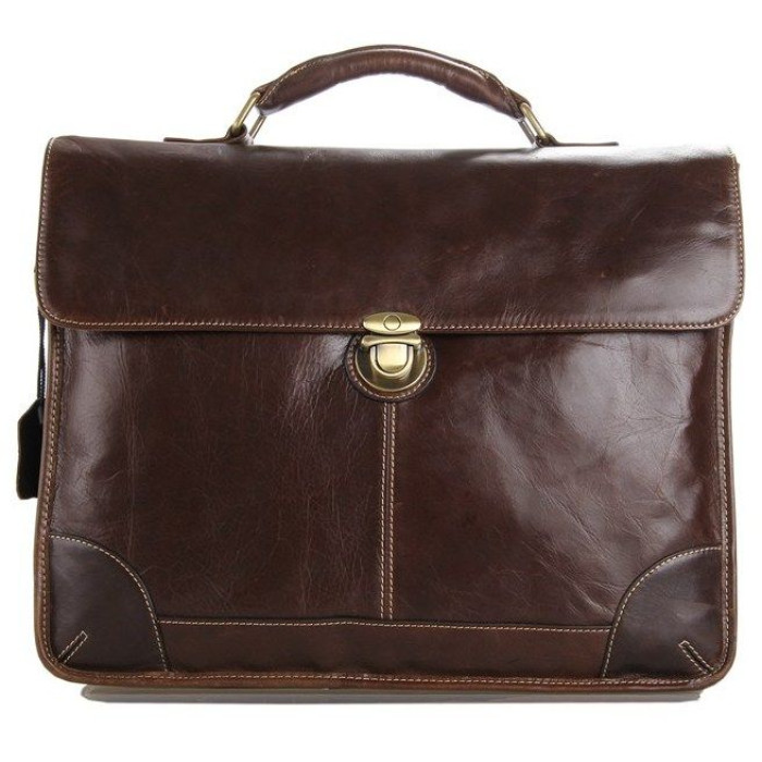 Якісна чоловіча шкіряна сумка-портфель коричневого кольору. Аксесуар розрахований для повсякденного використання, ділових зустрічей і переговорів. Такий портфель прекрасно підходить для зберігання папки з паперами формату А4.