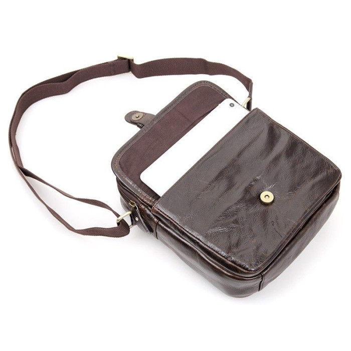 Багатофункціональна чоловіча шкіряна сумка через плече. Аксесуар виглядає дуже стильно і красиво. Якість сумки бездоганна, всі шви рівні, фурнітура надійна. Сумку можна носити не тільки через плече, а й в руці (передбачена шкіряна ручка). Така сумка, безсумнівно, сподобається будь-якому чоловіку.