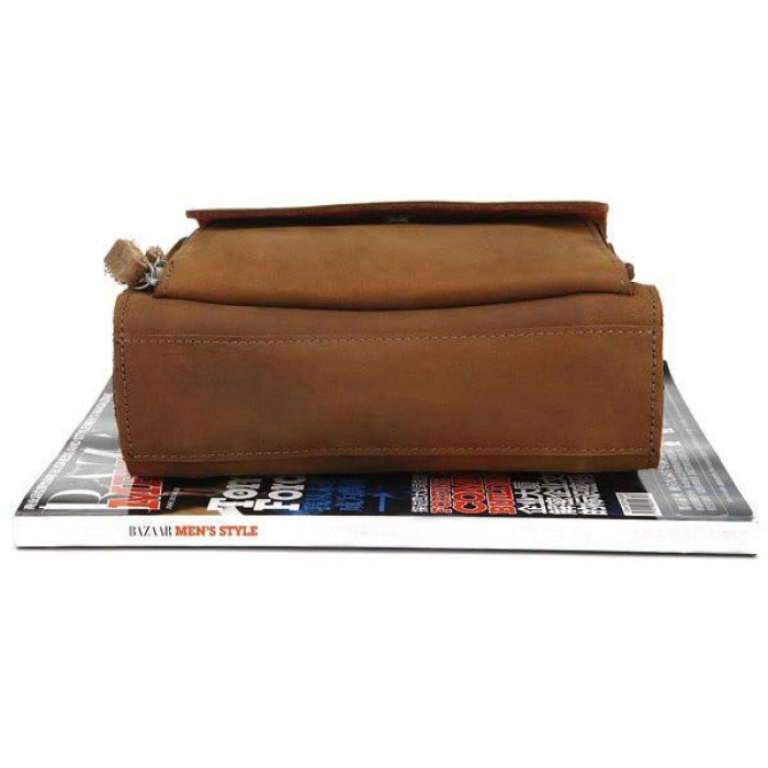 Ексклюзивна шкіряна сумка для чоловіків. Тримаючи цей аксесуар в руках, відразу розумієш, що це дорога і якісна річ. При виготовленні сумки використовувалася високоякісна шкіра і надійна фурнітура. Виріб прошито міцною ниткою. Завдяки цим якостям служити сумка буде довгий час і при цьому збереже презентабельний зовнішній вигляд.