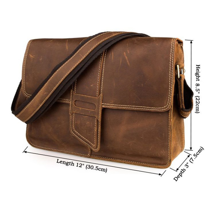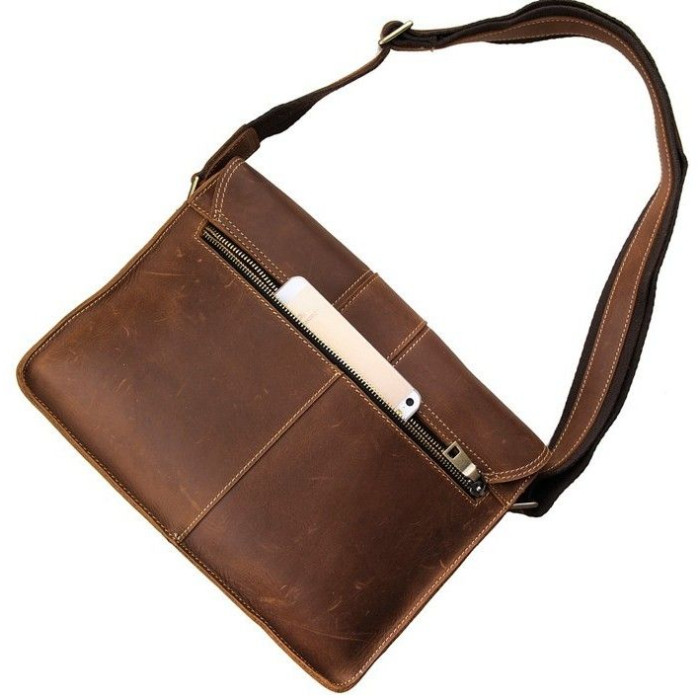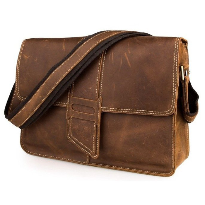 Шикарна чоловіча сумка середніх розмірів. Аксесуар виконаний з натуральної вінтажної шкіри, вироби з якої надзвичайно популярні в цьому році. Колір фурнітури: жовтий. Сумка закривається клапаном на магнітній кнопці, а також блискавкою. Носиться аксесуар через плече за допомогою зручного, регульованого плечового ременя. Сумка упакована в текстильний пилозахисний чохол білого кольору.