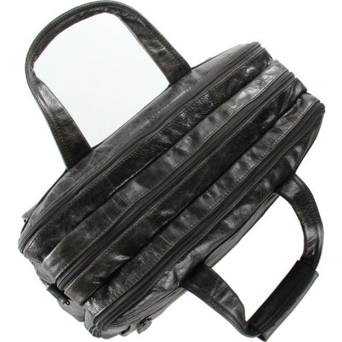 Вмістка чоловіча сумка з натуральної високоякісної шкіри. Колір фурнітури: темне срібло. Сумка дуже вмістка, має три великих відділення, що закриваються на блискавку, всередині яких дві накладні кишені для мобільних телефонів, два тримачі для кулькових ручок і два потайних відділення на блискавках.
