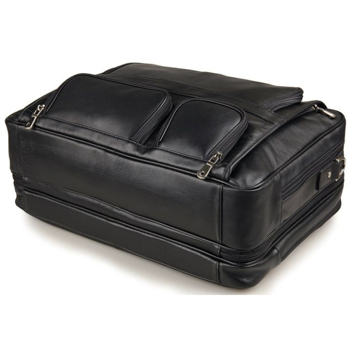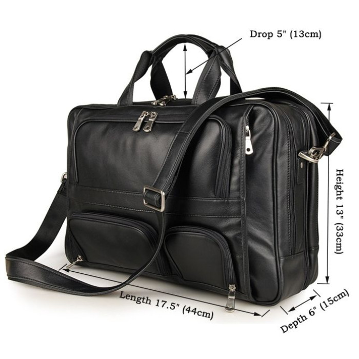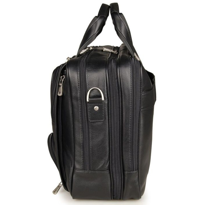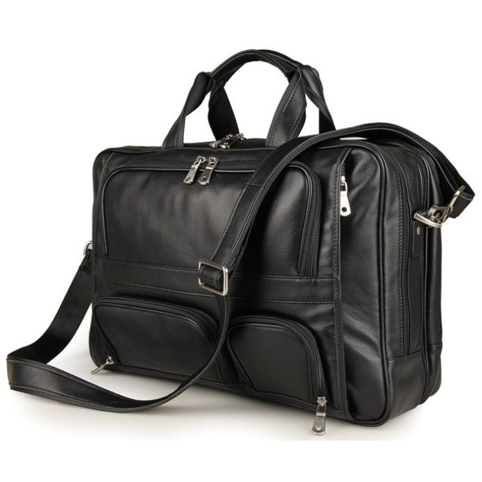 Ексклюзивна, багатофункціональна, зручна шкіряна сумка чорного кольору. В такому величезному аксесуарі поміститься практично все. При необхідності, в даній сумці можна переносити ноутбук з діагоналлю 17 дюймів. Носитися аксесуар можна через плече (в комплекті є регульований плечовий ремінь), а також в руці. Колір фурнітури: срібло. На лицевій стороні виробу розташовані три невеликі кишені на блискавках. Підкладка виконана з міцного текстильного матеріалу темно-коричневого кольору. Сумка упакована в пилозахисний чохол білого кольору.