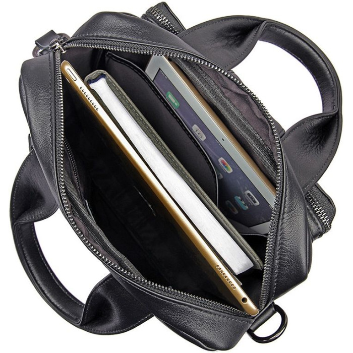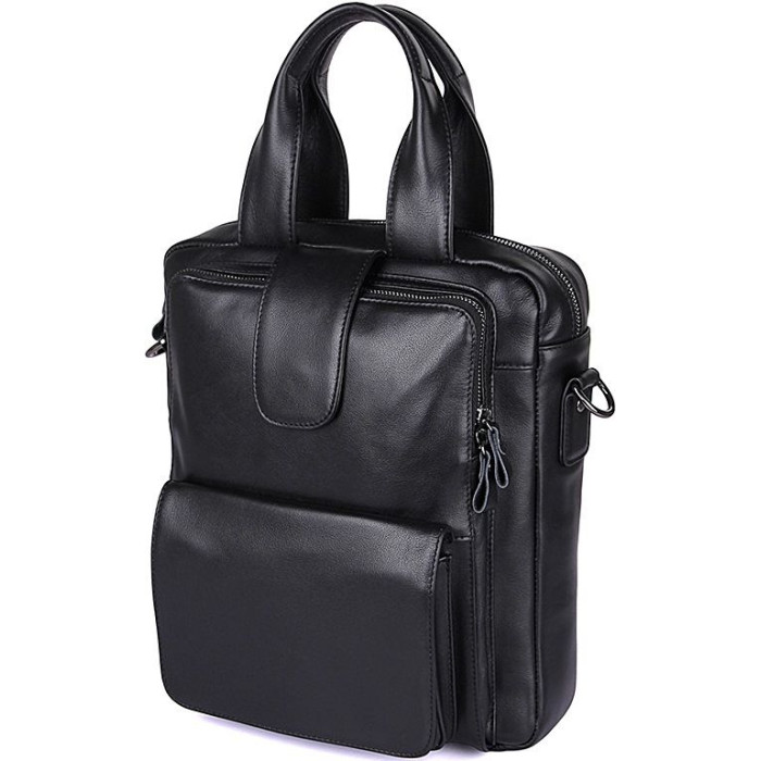 Зручна сумка з натуральної високоякісної шкіри чорного кольору. Таку багатофункціональну сумку можна носити в руці, а також через плече. Колір фурнітури цього виробу: чорне срібло. Сумка виглядає дуже модно і дорого. Не дивлячись на свої досить компактні розміри, дана модель надзвичайно містка і зручна у використанні. Аксесуар упакований в текстильний пилозахисний чохол білого кольору.