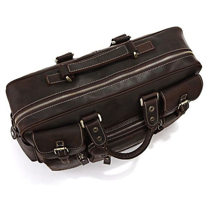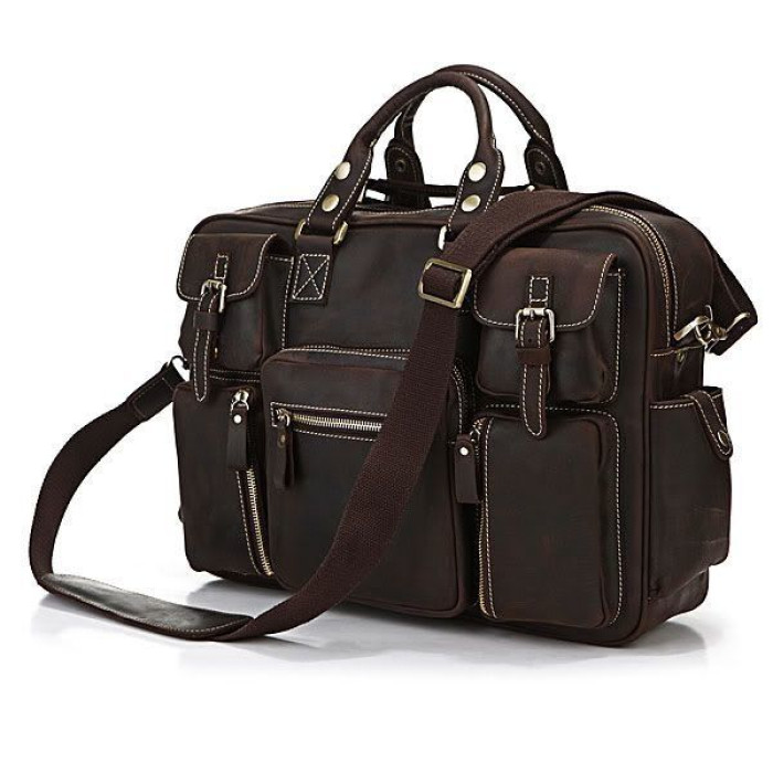 Функціоналом цієї сумки можна позаздрити. Такий вибір кишень вразить навіть найвибагливішого клієнта. Оптимальний варіант в дорогу або для ручної поклажі в літак. Сумка має потертості під ефект старовини, що надає їй особливий шарм. Підійде для чоловіків і для жінок. Модель упакована в тканинний чохол. Безпрограшний варіант для подарунку близькій людині. Ви можете носити її як за ручки, так і на плечі за допомогою міцної ручки.
