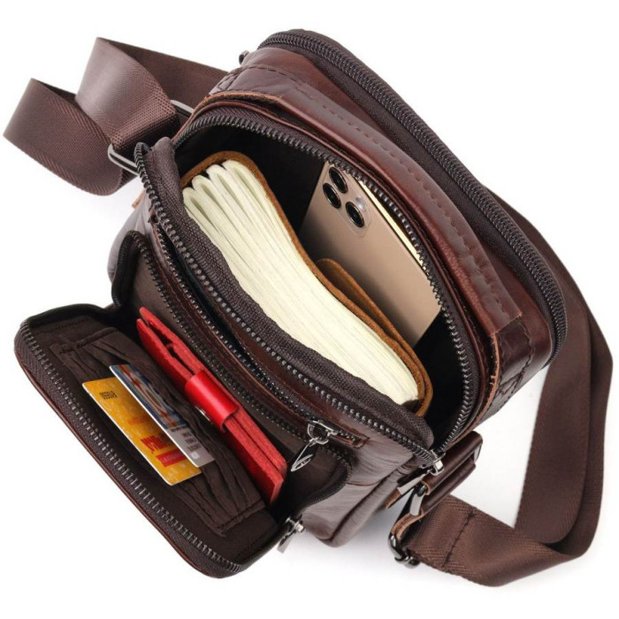 Практична чоловіча сумка компактного розміру із натуральної шкіри. У сумку з легкістю помістяться всі необхідні речі. З такою сумкою зручно ходитиме на роботу або зустрічі. Доповнено виріб якісною фурнітурою. Сумка стане чудовим подарунком для близької людини.