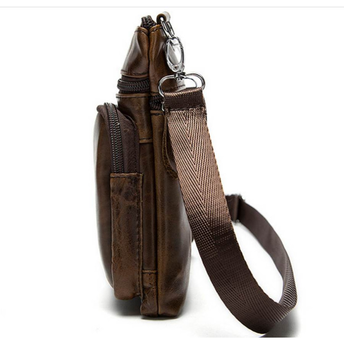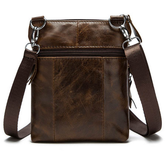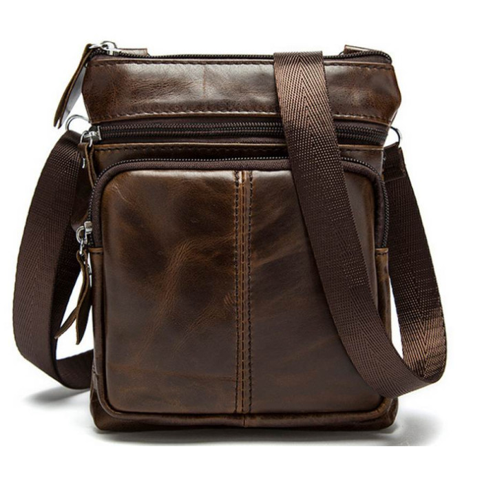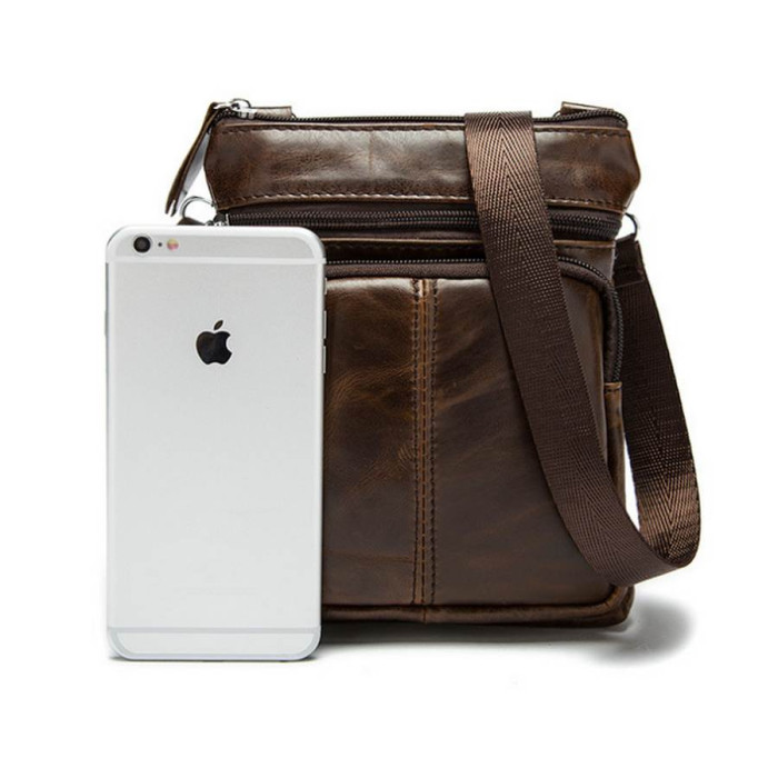 Компактна чоловіча шкіряна сумка для портмоне і документів. Відмінно підійде автомобілістам. Сумка закривається на блискавку. Підкладка виконана з міцного текстильного матеріалу. Всередині: потаємне відділення на блискавці і 2 накладні кишені для мобільних телефонів.