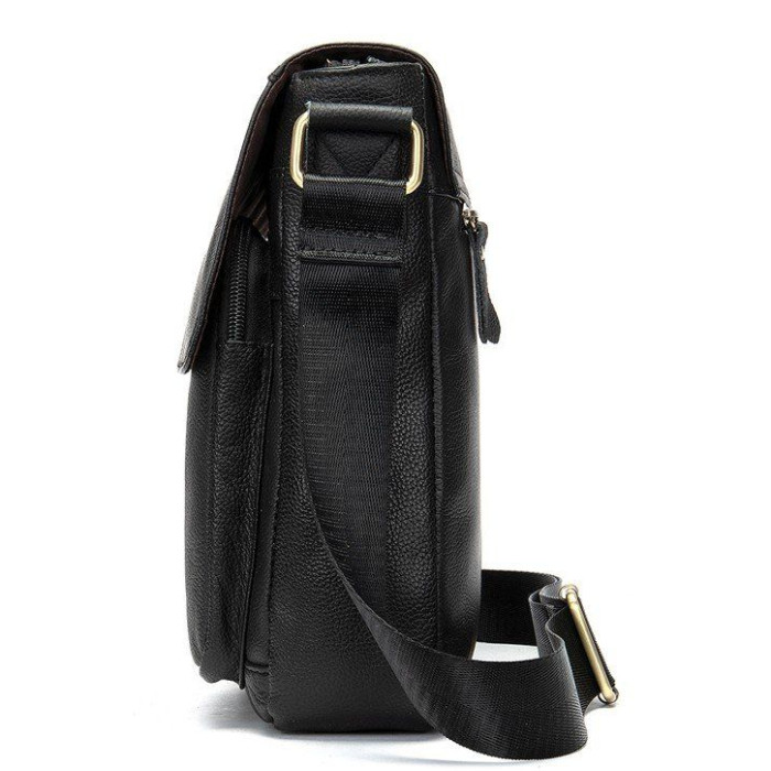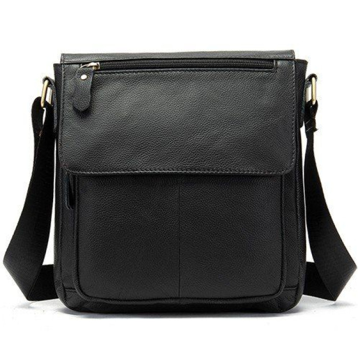 Солідна чоловіча сумка з натуральної шкіри чорного кольору і вертикального формату. Всередині - коричнева текстильна підкладка. Доповнено виріб фурнітурою золотистого кольору з міцного металу. Сумка стане ідеальним помічником чоловікові на кожен день. Виріб створено для чоловіків, які цінують якість. Модель виконана в зернистій шкірі. Аксесуар м'який і приємний на дотик. Сумка прекрасно тримає форму. З нею буде також дуже зручно ходити на роботу. Виріб стане чудовим подарунком для будь-якого чоловіка. У комплекті до сумки йде пилозахисний чохол.