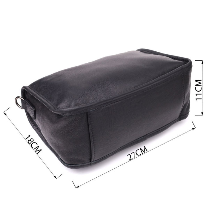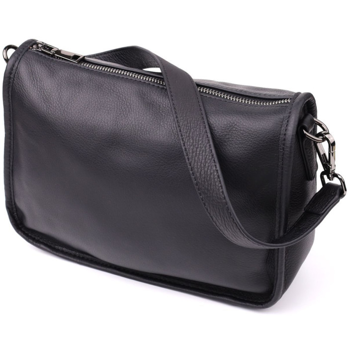 Чорна шкіряна сумка з двома ремінцями - універсальний аксесуар, який стане надійним та стильним супутником у повсякденному житті.