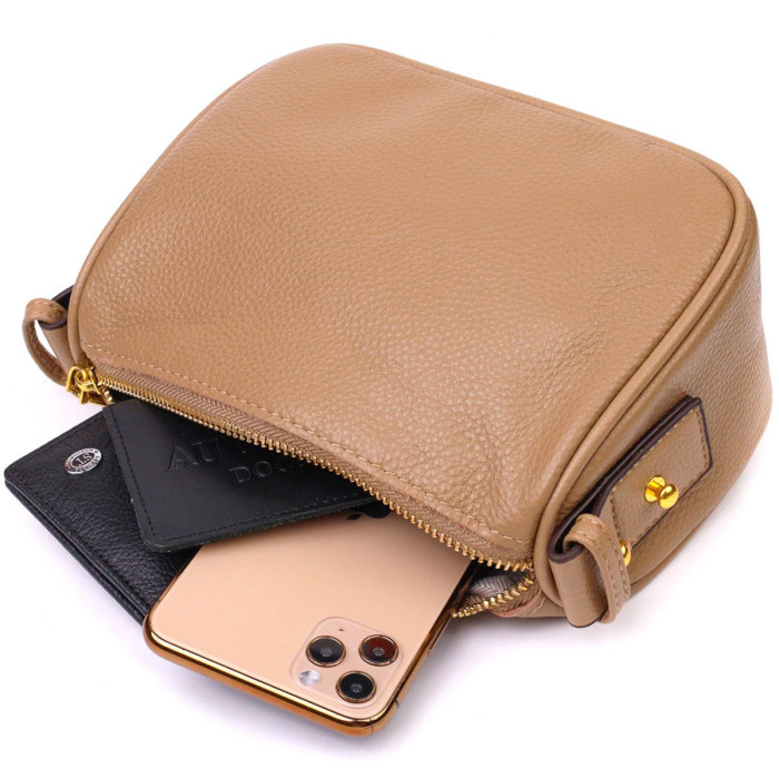 Чудова сумка із натуральної м'якої шкіри високої якості. Виріб дуже зручний, можна носити на плечі та в руках. Модель доповнена фурнітурою у кольорі жовтого золота. Аксесуар має одне основне відділення на блискавці, в якому дві кишеньки - одна на блискавці та одна відкритого типу, а також кишеня на блискавці зовні, на тильній стороні. Модель закривається на блискавку.