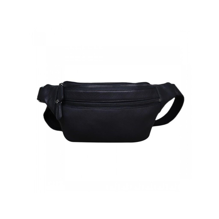 Чоловіча сумка на пояс зроблена з натуральної шкіри чорного кольору.
