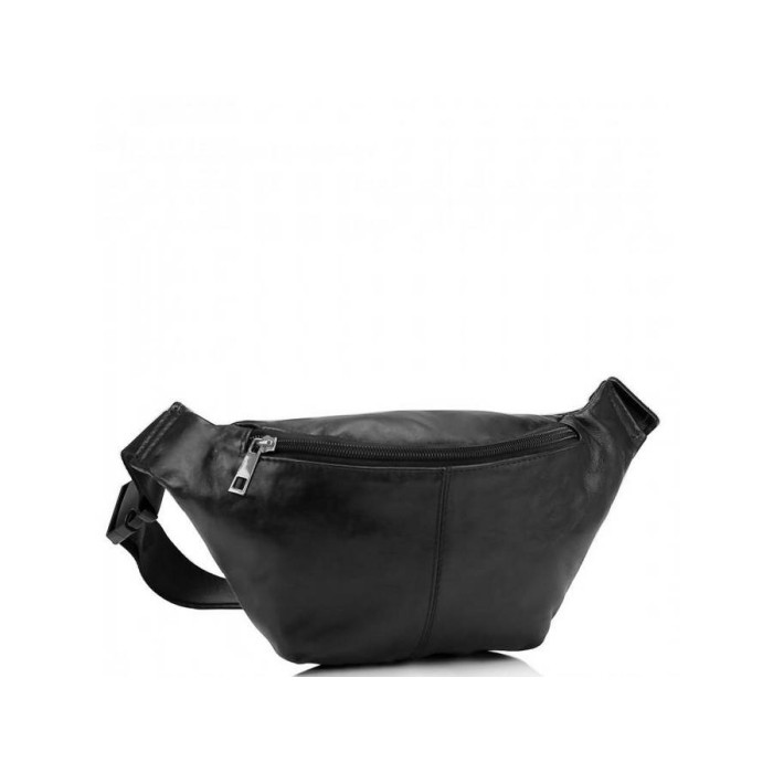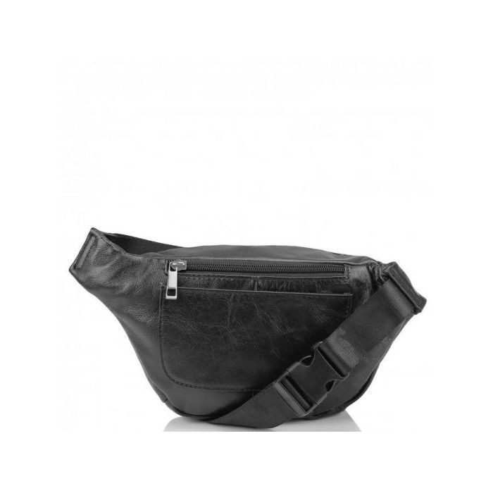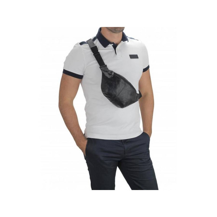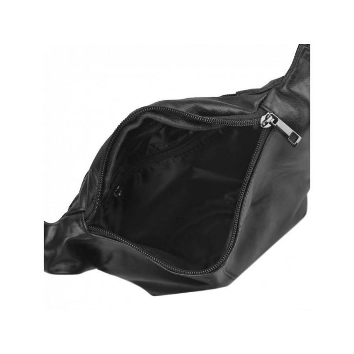 Шкіряна сумка бананка зроблена з натуральної шкіри в чорному кольорі. Має невеликий розмір, але при цьому дозволяє взяти з собою все найнеобхідніше: телефон, ключі, навушники, гроші. Зручно, що бананку можна носити не тільки на поясі, а й через плече. Ремінець регулюється в обсязі і застібається на пластиковий фастекс. Сумка чоловіча на пояс складається з одного основного відділення. На тильній стороні кишеня відкритого типу і кишеня на блискавці. Усередині основного відділення є маленька кишеня на блискавці.