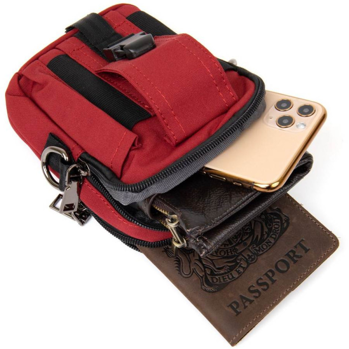 Маленька сумка на ремінь, яка замінить вам барсетку в червоному кольорі з малиновим відтінком. Сумка з нейлону дуже легка і практична. Виріб має необхідний функціонал. Сумку можна підчепити на лямки ременя за допомогою карабіна. Маленька текстильна сумка - ідеальний варіант на літо. Виробництво - фабричний Китай високої якості. Аксесуар доповнено якісною фурнітурою і має бюджетну вартість. Сумочка буде ідеальним подарунком для ваших близьких.