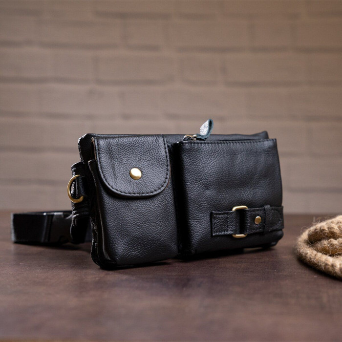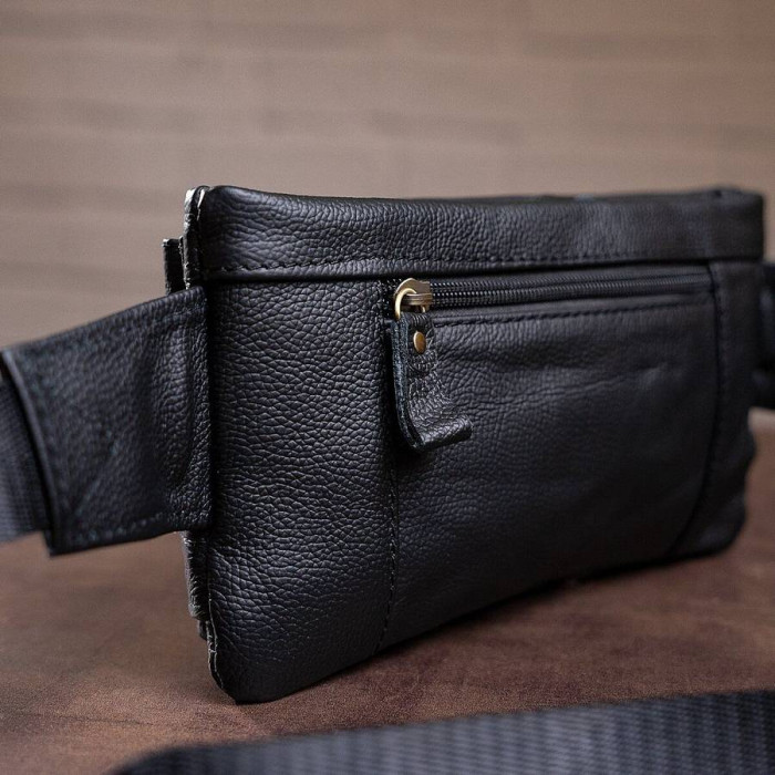 Класична та зручна бананка. Підійде як для чоловіків, так і для жінок. Аксесуар доповнено фурнітурою золотистого кольору. Прошитий чорною ниткою по краях. З такою сумкою все найважливіше буде у вас завжди під рукою. А вкрасти сумку з пояса буде набагато складніше. Тому з такою бананкою ви будете почувати себе безпечніше. Також, з нею зручно їздити в транспорті або брати її на далекі поїздки. Вам буде легко з такою сумки дістати документи або гроші при необхідності. Модель прошита рудим рядком і доповнена фурнітурою сріблястого кольору. Буде добре виглядати в якості подарунка для близької людини.
