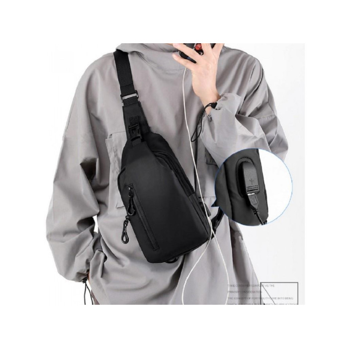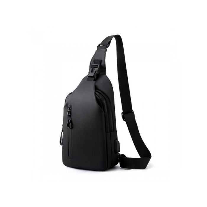 Чоловічий слінг Confident ATN02-T-2022A пошитий із міцного текстилю, з вологостійким просоченням, у чорному кольорі, добре тримає форму.