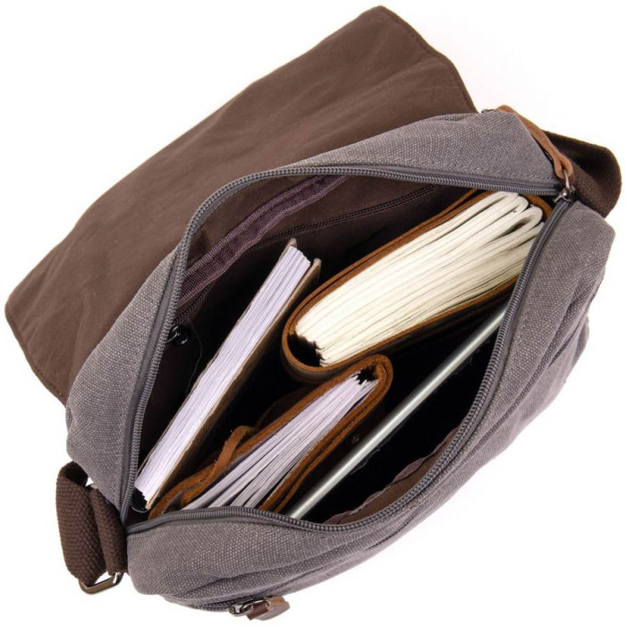 Невелика сумка почтальонка в універсальному сірому не маркому кольорі. Аксесуар доповнено необхідним функціоналом. Закривається сумка на клапан з магнітними кнопками. Всередині - щільна підкладка з тканини. Сумку зручно носити на плечі. Текстильний ремінець не зніметься. Сумка ідеальний варіант на кожен день за бюджетною вартістю.