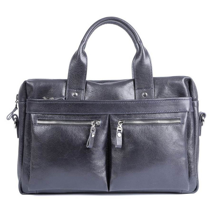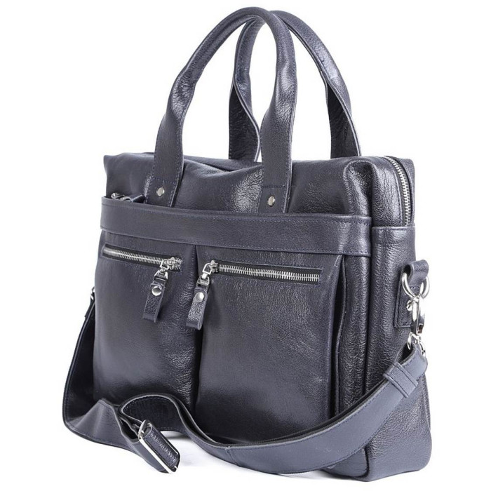 Надійна чоловіча сумка з натуральної шкіри приємної на дотик. Колір фурнітури: срібло. На лицевій стороні виробу розташовані дві невеликі симетричні кишені на блискавці, а також відділення на блискавці. На задній зовнішній стороні знаходиться відділення на блискавці. Сумка надійно прошита надміцною ниткою. Переносити даний аксесуар можна в руці, а також через плече (в комплекті є регульований плечовий ремінь). Шкіряна чоловіча сумка - це чудове рішення для подарунка чоловікові до будь-якого свята.