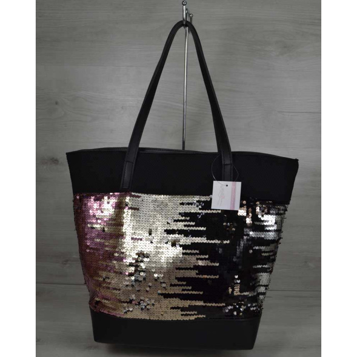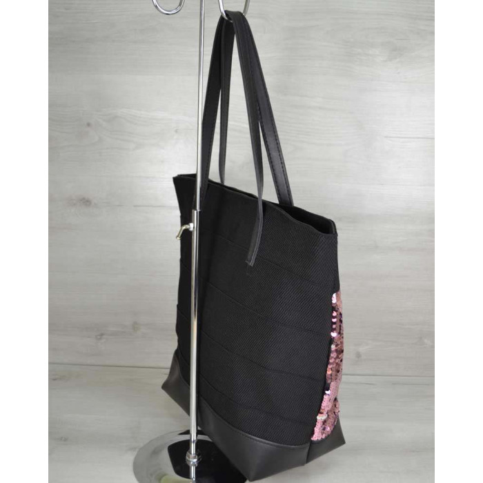 Жіноча сумка Welassie, виготовлена з гумки і шкірозамінника високої якості з паєтками. Застібається на блискавку, всередині на підкладі. Має одне відділення і дві кишені: одна на блискавці, друга відкрита, для дрібних предметів. Ручки міцні - висота їх розрахована, щоб носити сумку на згині ліктя, а також на одне плече.